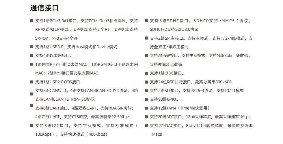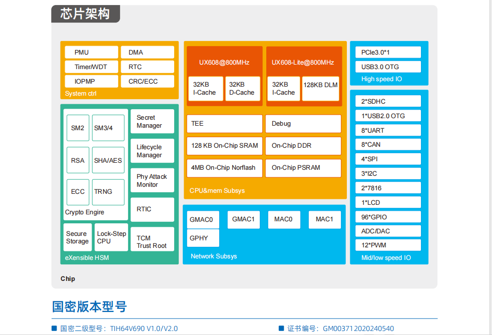 集成异构双核64位国产CPU RISC-V;最高工作频率800Mhz
